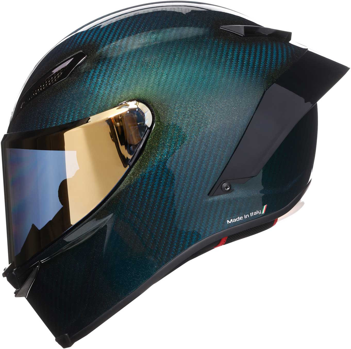 The Pista GP RR is an exact AGV helmet used in races by world champions. It received the new FIM homologation, which certifies the highest possible level of protection, even against any dangerous twisting of the head. The AGV Extreme Safety design exceeds the requirements of the ECE22.06 homologation. Every detail is designed to ensure ultimate performance. The 100% carbon fiber guarantees extraordinary lightness, which makes it effortless to wear. Its shapes & metal air vents are studied in the wind tunnel & tested by athletes in order to ensure the best aerodynamic penetration & the greatest stability at high speeds, also due to the innovative profile of the rear Spoiler. The Ultravision visor is an integral part of the protector that allows 190° panoramic vision, & 85° vertical vision. The 360° Adaptive Fit system allows for complete customization of the interior, giving the rider the possibility to select the ideal thickness. Every detail is designed with winning in mind.
