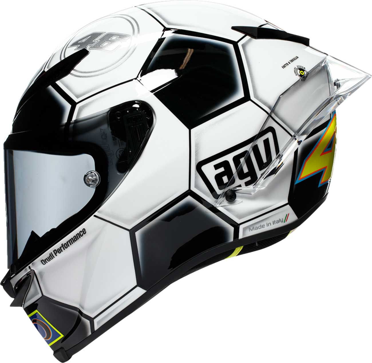 The Pista GP RR is an exact AGV helmet used in races by world champions. It received the new FIM homologation, which certifies the highest possible level of protection, even against any dangerous twisting of the head. The AGV Extreme Safety design exceeds the requirements of the ECE22.06 homologation. Every detail is designed to ensure ultimate performance. The 100% carbon fiber guarantees extraordinary lightness, which makes it effortless to wear. Its shapes & metal air vents are studied in the wind tunnel & tested by athletes in order to ensure the best aerodynamic penetration & the greatest stability at high speeds, also due to the innovative profile of the rear Spoiler. The Ultravision visor is an integral part of the protector that allows 190° panoramic vision, & 85° vertical vision. The 360° Adaptive Fit system allows for complete customization of the interior, giving the rider the possibility to select the ideal thickness. Every detail is designed with winning in mind.