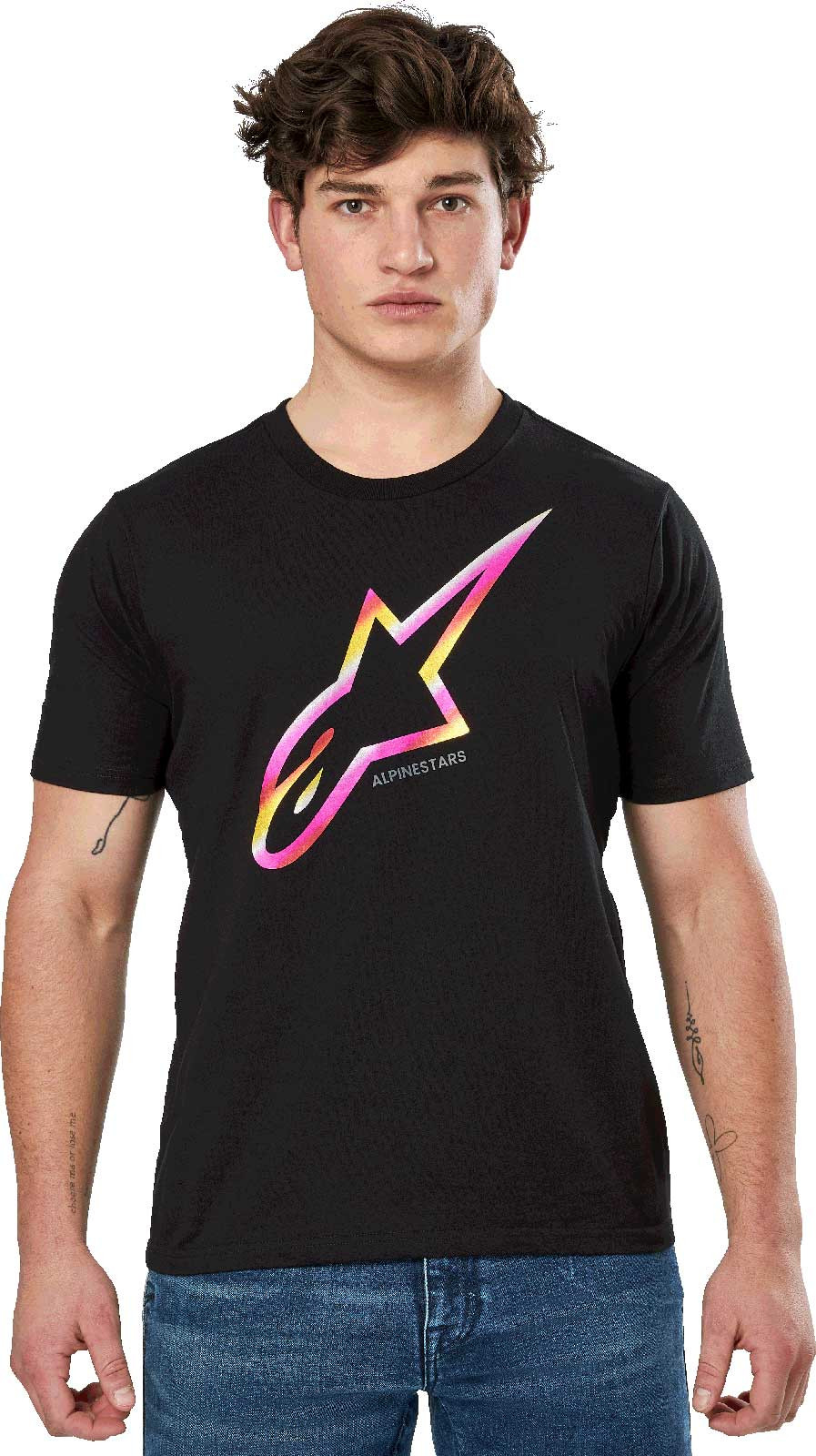 Front astars slanted gradient foil print logo with back word graphic.
