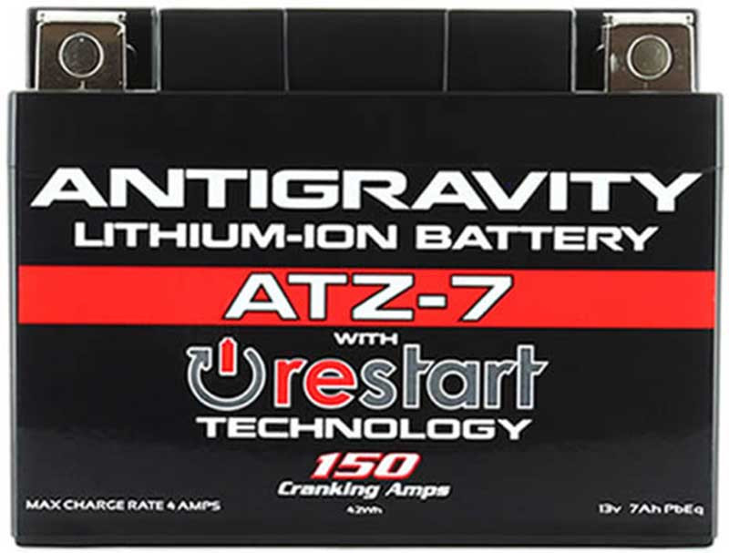 The Antigravity ATZ-7-RS is a hi-power lightweight Lithium-Ion battery, built with our groundbreaking RESTART Technology (built-in jump-starting) so you won’t ever get stranded with a dead battery again! Directly replaces the OEM YTZ7S, YTZ5 and others. Most off-road bikes use this size as well as some street bikes.